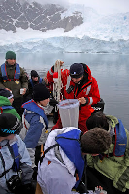 De seguida voltámos a pisar o continente Antárctico, em Neko Harbor. Este foi o local que mais me agradou visitar, aqui, tivemos a oportunidade de participar em workshops sobre aspectos geológicos do local, gelo e glaciares e ainda recolhemos amostras de organismos das águas antárcticas que pudemos observar mais tarde ao microscópio.
